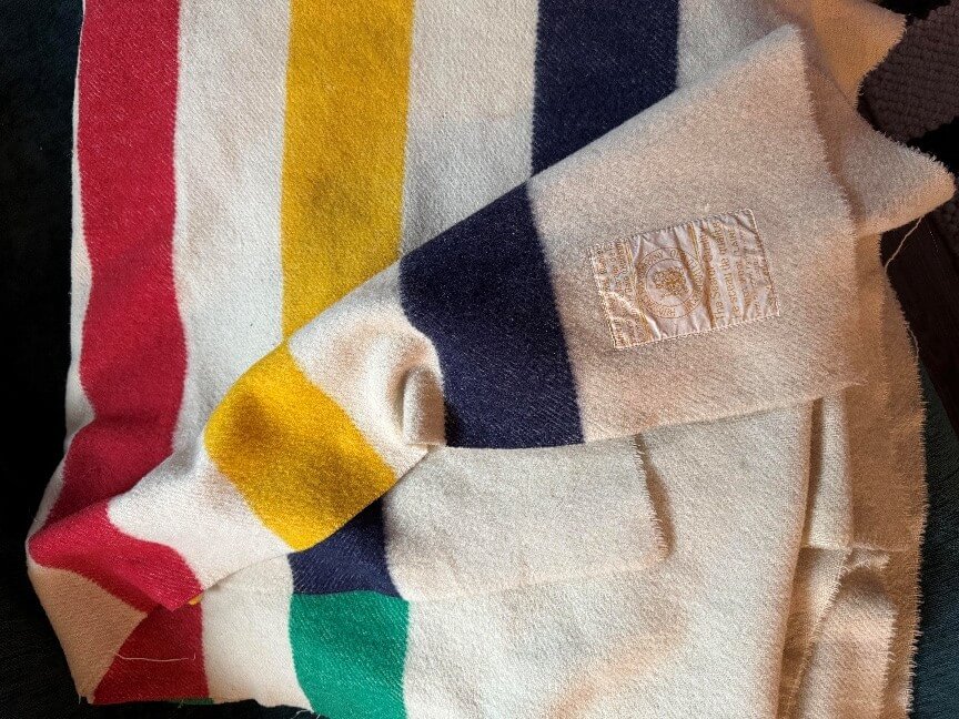 Hudson’s Bay Company’s blankets can be found with four stripes of green, red, yellow, and navy blue on a white blanket and were used as capotes for Métis people.